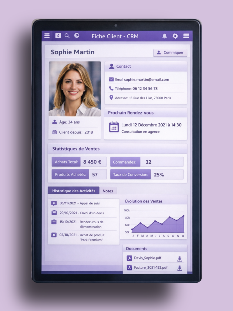 👉 Avec Easybel, chaque client a une fiche complète qui :
